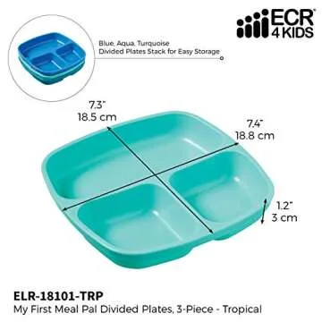 ECR4Kids My First Meal Pal Divided Plates 3-Pack - Safe, Colorful and Fun for Kids!
