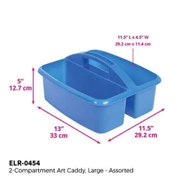 ECR4Kids Large 2 Compartment Plastic School Art Caddy, Assorted (4-Pack)