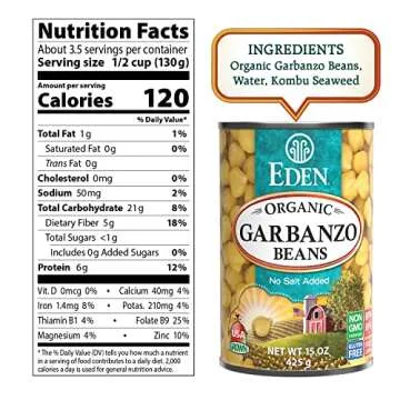 Eden Organic Garbanzo Beans, Chickpeas, 15 oz Can (12-Pack Case), No Salt Added, Non-GMO, Gluten Free, Vegan, Kosher, U.S. Grown, Heat and Serve, Macrobiotic