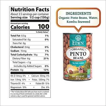 Eden Organic Pinto Beans are sourced from U.S. farms, organic, non-GMO, and come in BPA-free cans, making them a healthier choice.