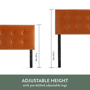 The headboard offers seven height options, adjustable between 34 and 46 inches.