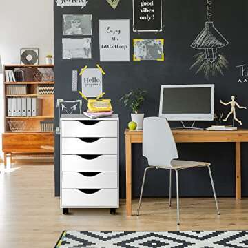 EDGEWOOD 5 Drawer Vertical File Cabinet Filing Storage Wood Organizer Dresser Chest Under Desk, 16" D x 16" W x 26" H, White