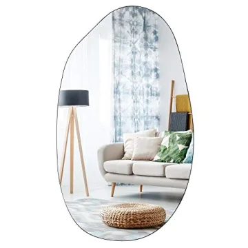 Show moreTransform your living space with the exquisite EDGEWOOD Asymmetrical Accent Wall Mounted Mirror. This irregular oval mirror stands out as a striking piece of decor, beautifully blending functionality with artistic flair. Measuring 19.7 x 33.5 inches, this mirror makes a bold statement while adding depth and light to any room. Crafted from high-quality materials, including a sturdy TSCA certified MDF backboard and premium silver-backed glass, this mirror ensures a clear and beautiful reflection without distortion.