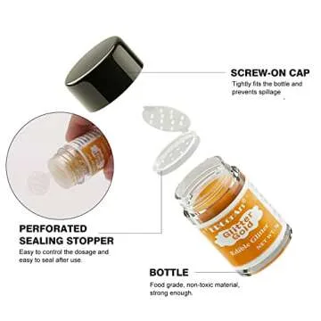 Crafted for the **creative foodie**, our edible glitter empowers you to unleash your imagination. The unique cap design allows precise control over the amount of glitter you wish to sprinkle, making it an ideal choice for both novice and expert chefs alike. Whether you’re making glamorous cocktails, luxurious cakes, or charming chocolates, this edible glitter brings your visions to life.