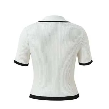 Edlike Women's Button Polo Collar Ribbed Knit T-Shirts Short Sleeve Summer Casual Tee (one_Size, White)