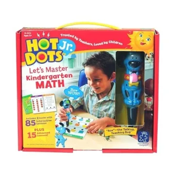 Show more Unleash your child’s potential with the Educational Insights Hot Dots Jr. Let’s Master Kindergarten Math Set. This award-winning learning tool combines interactive fun with essential academic skills, making it ideal for kindergartners eager to sharpen their mathematical abilities without the pressure of traditional worksheets. Designed for children ages 5 and up, this comprehensive set includes everything needed to prepare little learners for their next academic adventure. With two spiral-bound books packed with 85 engaging lessons and 15 challenge activities, your child will explore a variety of topics such as counting, numbers, shapes, patterns, and more! Watch as their confidence soars with the delightful Hot Dots Jr. Ace—the talking dog pen that offers immediate feedback, ensuring that learning is both exciting and effective!