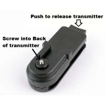 This innovative holder features a quick-release clip that makes transitioning between training tasks a breeze. Simply screw the lug into the threaded hole located at the back of your transmitter, and effortlessly slide it into the clip. The intuitive design ensures that with a simple push of a button, the transmitter can be released, allowing for fast and convenient use without fumbling or delays, making your training sessions smoother and more efficient.