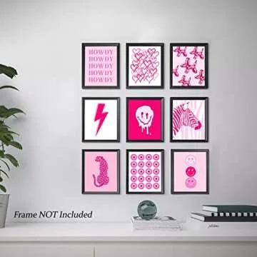 EDUS Preppy Room Decor, Preppy Art Prints Aesthetic Wall Decor, Set of 9 (8x10 inch), Wall Art for Teen Girls Bedroom, Preppy Poster Prints for Bedroom Decoration (UNFRAMED) (Preppy Pink)