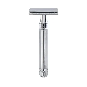Show moreThe Edwin Jagger DE89LBLAMZ Safety Razor is more than just a tool; it is a luxurious experience that transforms your daily shaving routine. Expertly crafted in Sheffield, England, this razor boasts a stunning chrome-lined finish that beautifully combines traditional craftsmanship with modern engineering. With its clean lines and classic design, it effortlessly elevates any grooming kit, making it the ideal choice for discerning shavers.