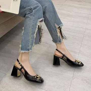 EDWRD Women's Mary Jane Shoes Sexy High Heels Horsebit Mary Jane Shoes Square Toe Block Heel Sandals,Black-38