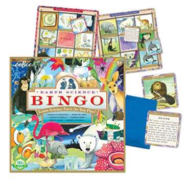 eeBoo: Natural Science Bingo Game, for 2 to 4 Players, Learn Science Facts as You Play, for Ages 5 and up, Includes Cloth Bag for Holding Tiles