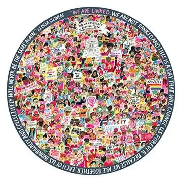 Show more The eeBoo 500-Piece Round Jigsaw Puzzle is a delightful and engaging activity that promises to bring joy to puzzle enthusiasts of all ages. With a finished size of 23 inches in diameter, this beautifully designed puzzle features vibrant illustrations that showcase a remarkable diversity of people, all unified under a meaningful theme of women's and civil rights. Crafted from 90% recycled materials and printed with vegetable-based inks, this high-quality jigsaw puzzle embodies a commitment to sustainability while providing endless entertainment.