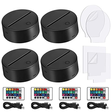 EEEKit 4 Pieces Acrylic Light Base Night Light Set with Remote Control and 16 Colors Display