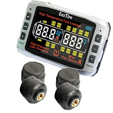 The EEZTire TPMS can monitor up to 26 tires simultaneously, providing comprehensive safety for large vehicles like RVs and trailers.