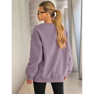 Show more Introducing the **EFAN Women’s Oversized Sweatshirts Hoodies** in a stunning Light Purple shade, a versatile and stylish addition to your fall and winter wardrobe. Designed from a premium blend of **polyester and cotton**, this lightweight yet warm pullover ensures you stay cozy without sacrificing style. The **crew neck** and **drop shoulder collar** create an effortlessly chic look, making this hoodie not just about comfort but also about contemporary fashion. Enjoy long sleeve warmth with a slight stretch that conforms beautifully to your shape. Whether you’re lounging at home or stepping out, this fleece-lined pullover remains comfy, soft, and perfect for layering. It’s a **standard-size oversized sweater** that pairs seamlessly with everything, bringing you a staple piece for your seasonal attire. Less