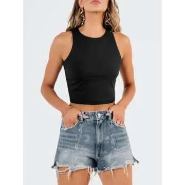 EFAN Womens Sexy Sleeveless High Neck Crop Tops Workout Cute Racerback Cropped Tank Tops Summer Clothes Teen Girls Black XS
