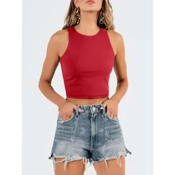 EFAN Womens Sexy Sleeveless High Neck Crop Tops Workout Cute Racerback Cropped Tank Tops Summer Clothes Teen Girls Red M