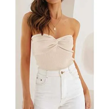Show more The twist front tube crop tank top is the quintessential summer essential for every fashionable wardrobe. Made from a super soft blend of 50% Viscose, 30% Polyamide, and 20% Polyester, this top promises a lightweight and stretchy fit, ensuring comfort all day long. With its chic twist knot rib knit design, the sweetheart neck and strapless style add a perfect touch of elegancy and femininity, allowing you to flaunt your shoulders while staying stylish. Whether you're hitting the beach, attending a vibrant party, or enjoying a casual day out with friends, this cute tube top is your go-to choice.