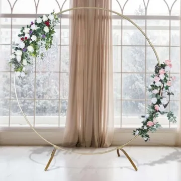 Show moreTake your celebrations to the next level with the **Efavormart 7.5 Ft Round Gold Metal Wedding Arch**, the ultimate centerpiece that transforms any venue into a magical experience. Crafted from high-quality metal, this elegant arch boasts a robust structure that measures **91 inches in height and 89.5 inches in diameter**, making it the perfect backdrop for capturing unforgettable moments. Lightweight at just **25 lbs**, it’s designed for effortless transport and setup. Whether you’re aiming for a romantic wedding, a vibrant birthday bash, or a chic gender reveal, this arch stands strong while offering a sleek, shiny finish that steals the show.