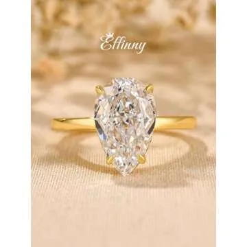 Show moreIntroducing the Effinny 3.5ct Solitaire Pear Shaped Engagement Ring, the pinnacle of elegance and sophistication designed to enchant anyone who lays eyes on it. Crafted from high-quality sterling silver, the ring features a stunning pear-shaped simulated diamond adorned with a noble gold tone that sparkles brilliantly in any light. Its unique crushed ice cut craftsmanship reflects a dazzling array of facets, ensuring that this ring stands out during both special occasions and everyday wear. This piece not only showcases luxury but also offers enduring beauty and durability, making it the perfect accompaniment for any jewelry collection.