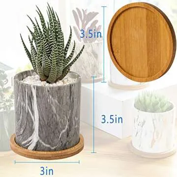 Introducing the EFISPSS Succulent Plant Pots, the ideal solution for planting enthusiasts and gifting aficionados! Measuring at a perfectly tailored size of 3.15 x 3.15 x 3.2 inches, these charming ceramic pots are not only great for small succulents and cacti but also serve as cute decorative pieces for any environment. Each pot comes complete with a stylish bamboo tray (3.5x3.5x0.32 inches) to catch excess water and protects surfaces, ensuring practicality...