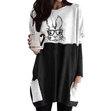 EFOFEI Womens Easter Bunny Oversized Sweatshirt Casual Loose Fit Cute Rabbit Tops Oversized Long Sleeve Shirt