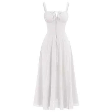 EFOGEP White Corset Dress Milk Maid Dress Corset Sundress Women Floral Corset Dress, Boho Summer Spaghetti Straps Square Neck Casual Midi Dress Flowy Slit Bustier Dresses White S