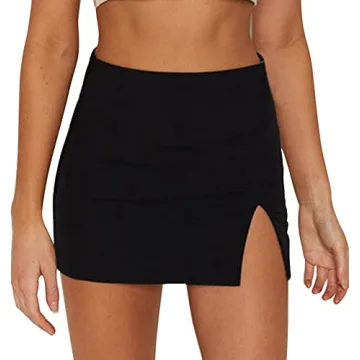 EG CHRIS G Women's High Waist Bodycon Mini Skirt with Slit - Sexy & Stretchy