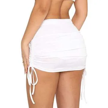 EG CHRIS G Women's White Mini Skirt Side Drawstring Stretchy Ruched Bodycon Short Mini Skirt (S, White 5)…