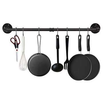 EGASON 34.3 inch Industrial Pipe Pot Bar Rack - Stylish Kitchen Organizer with S Hooks