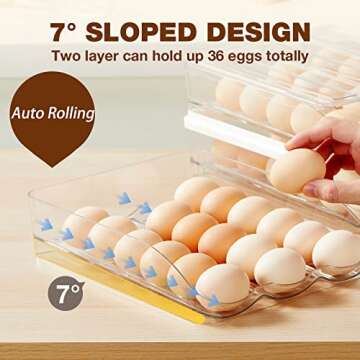 Egg Tray Organizer for Refrigerator, Egg Holder for Refrigerator, Rolling Egg Storage Container Dispenser for Refridge with Lid,Stackable Clear Plastic Storage Box for Fridge and Counter(2 layers)