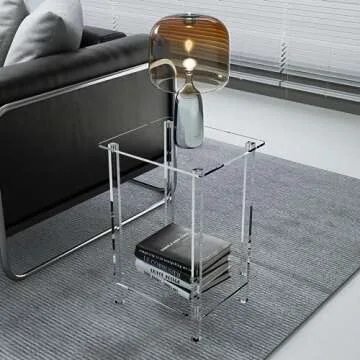 Eglaf Acrylic Small Side Table with Square Leg - 13.4'' L x 11.5'' W x 19.6'' H - Small Nightstand Bedside Table 2-Tier Clear End Table for Living Room, Bedroom