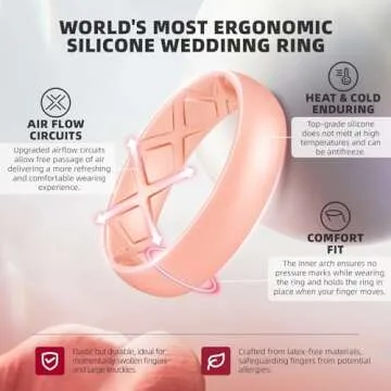 Egnaro Inner Arc Ergonomic Breathable Design, Silicone Rings for Women with half sizes, Women's Silicone Wedding Band,5.5mm Wide-2mm Thick