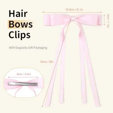 Ehaler Satin Hair Accessories - 8 PCS Double Black & White Ribbon Ponytail Holders, Metal Clips for Women, Girls, Toddlers, Teens, Kids