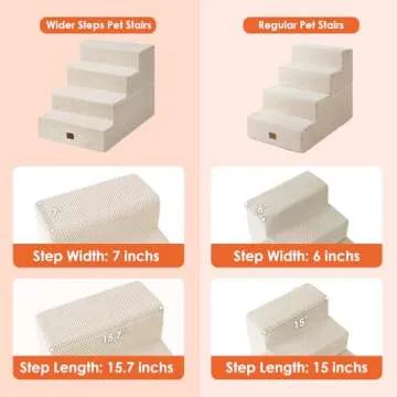 EHEYCIGA Dog Stairs for Bed 20”H, 4-Step Extra Wide Dog Steps for High Bed, Pet Steps for Small Dogs and Cats, Non-Slip Balanced Dog Indoor Ramp, Beige