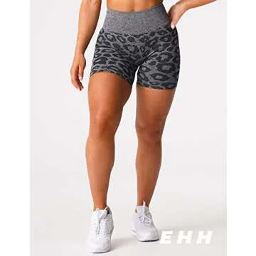 EHH Women Seamless High Waited Yoga Shorts Leopard Biker Shorts Butt Lifting S