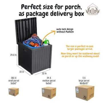 EHHLY Deck Box, 51 Gallon Package Bin Delivery Box for Outside Front Porch, Small Patio Outdoor Storage Boxes Waterproof, UV Resistant Plastic Resin Pool Storage Bins with lids, Grey