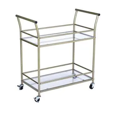 eHomeProducts Champagne Finish 2-tier Glass Serving Wine Tea Cart Kitchen with Caster Wheels