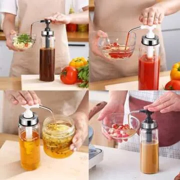 EHUNYELF Condiment Press Bottles, Coffee Syrup Pump Dispenser- No Drip, Glass Pump Dispenser 17 OZ, Dispenser Great for Ketchup, Salad, BBQ Sauce,Honey, Oyster Sauce, Oil.(2 Pack)