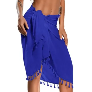 Eicolorte Beach Sarongs Pareo for Women Bikini Bathing Suit Swim Wrap Cover Up Wrap Skirt (013-Royal Blue-Short)