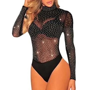 Eiffel Women's Sheer Mesh Turtleneck Neck See Through Leotard Bodysuit Body Tops Black