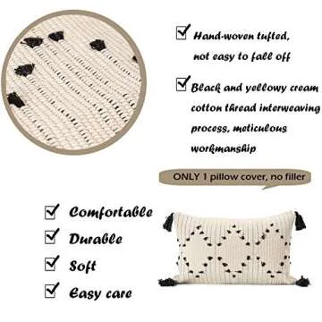 EIGRAMSET Bigcozy Boho Lumbar Pillow Cover Tassel, Farmhouse Small Cream Decorative, Modern Moroccan Accent Tribal Cotton Woven Pillow Case, 12"x20" (Yellowy Cream), Beige, jjcover1113-beige-30x50
