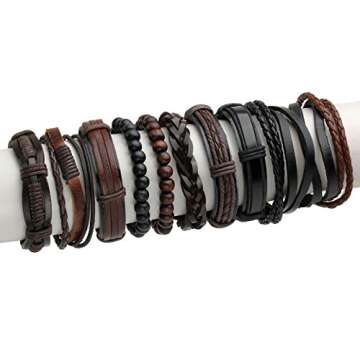 Show moreExplore the unique and versatile Eigso 10Pcs Braided Leather Bracelets Set, expertly crafted to enhance your accessory collection. This stunning set includes a variety of ten eye-catching multilayer bracelets, each showcasing its own distinct style to complement your outfits effortlessly. Made with premium materials including durable hemp cords, genuine leather, and stylish wooden beads, these bracelets exhibit a perfect blend of quality and design, ensuring long-lasting wear and comfort.