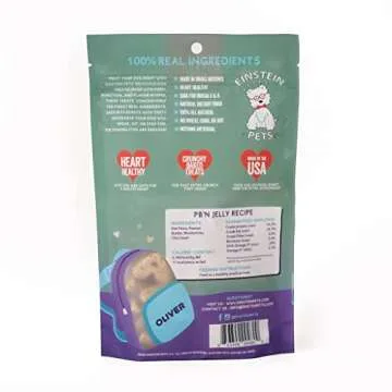 Einstein Pets Everydays PB’N Jelly Crunchy Heart Shaped Treats, All Natural Protein Packed Organic Dog and Puppy Baked Biscuit Training Treat, Peanut Butter Blueberry Recipe with CHIA, 6 Ounce Bag