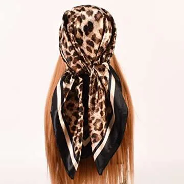 EIysee 35 x 35 Women's Fashion Pattern Large Square Silk Like Hair Scarf Head Sleeping Wrap Satin Neck Bandana for Gift (Leopard print-black border)…