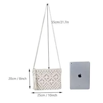 Eiyye Crochet Crossbody Bag Handmade Purse Crocheted Crossbody Bag with Tassel for Women Girls(Off White)