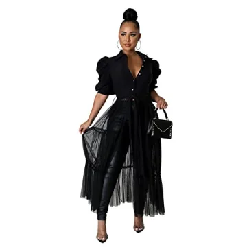 Introducing the Ekaliy Women's Short Sleeve Round Neck High Low Asymmetrical Irregular Hem Casual Tops Blouse Shirt Dress, the ultimate statement piece to elevate your wardrobe! With its chic and contemporary design, this stylish sleeveless crop top is crafted to impress. It features a unique off one-shoulder style that draws attention, complemented by stunning ruffle details and a high-low asymmetrical hem that adds an edge to your outfit. Made from high-quality...