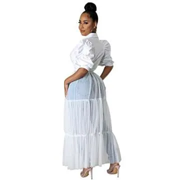 Ekaliy Women Sexy Short Sleeve Bodycon High Low Asymmetrical Ruffle Tunics Blouse Shirt Top Dress XL White