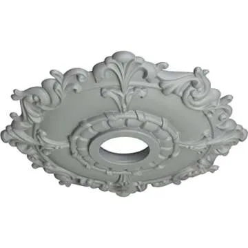 Show moreIntroducing the stunning Ekena Millwork CM18RL Riley Ceiling Medallion, an exquisite addition designed to elevate your home decor effortlessly. Spanning an impressive 18-inch outside diameter, this ceiling medallion seamlessly integrates both functionality and beauty into any room. Weighing only modestly, its lightweight design not only enhances visual appeal but also provides easy installation that makes home improvement projects a breeze. Crafted with meticulous detail, the medallion offers an exclusive collection of designs that inject charm and sophistication into your living space.