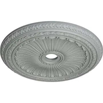 Show moreDiscover the transformation you can bring to your home with the Ekena Millwork CM35VI Viceroy Ceiling Medallion, carefully designed to be the elegant touch your ceilings have been missing. Measuring a stunning 35-1/8 inches in Outside Diameter and with a 2-1/2 inch Projection, this exquisitely detailed piece is both large enough to make a statement and lightweight for effortless installation. Unlike many substitutes, this medallion is factory primed and ready for paint or a faux finish, allowing you to customize it to fit seamlessly into your existing decor. From sophisticated classic looks to modern designs, this medallion adapts to your personal style perfectly.